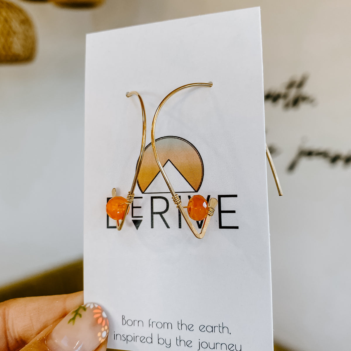 These best selling threader earrings feature carnelian stones wire wrapped on hand shaped and hammered ear threaders. Super light weight with a pop of color!