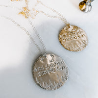 Hand stamped and hammered medallion with the cutest woodsy vibe. This Medallion is over twice the size of our 19mm large coin necklace, measuring approximately 1 1/4" in diameter.