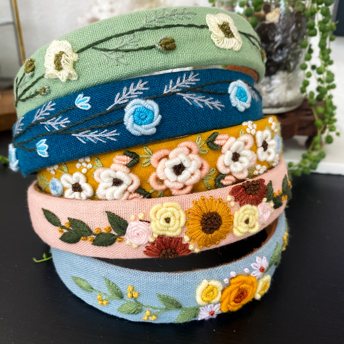 This linen headband is carefully hand stitched with a beautiful floral embroidery pattern.  A trendy, unique hair accessory to add to your wardrobe or to gift to your loved one.
