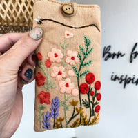 Made from high-quality linen fabric, this pouch features a stunning floral embroidered design that adds a touch of charm.