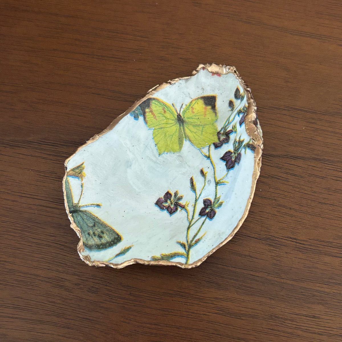 The cutest decoupage shell dish from Serenity Shells- each different and unique. Perfect for holding rings and small earrings.