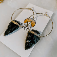 Hand shaped hoop earrings wire wrapped with Obsidian arrowheads. Add instant edge to your look!