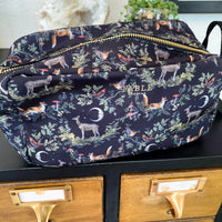 Black 'A Nights Tale' Animal Pouch, featuring a lovely woodland print that brings timeless charm to your beauty routine.