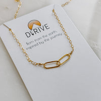 The Connected necklace features symbolizes connection between loved ones. Two interlocked paperclip chain links on dainty chain makes this necklace an easily versatile pieces that is that is great for everyday wear.
